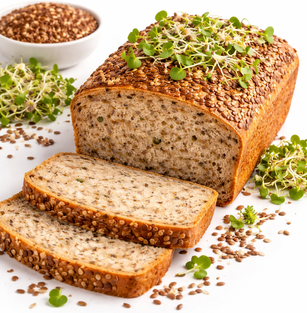 Безглютеновый хлеб на основе пророщенной муки с микрозеленью